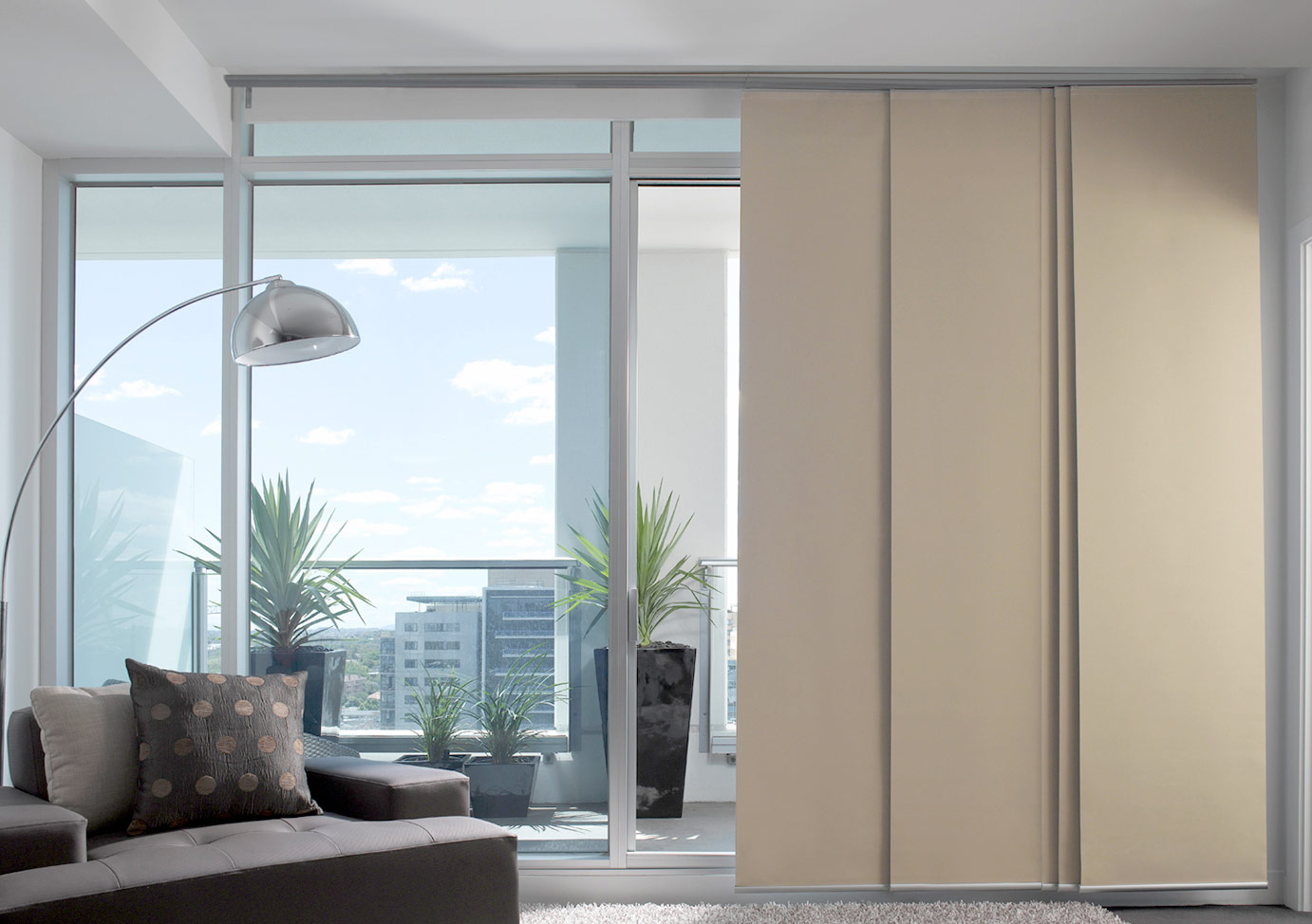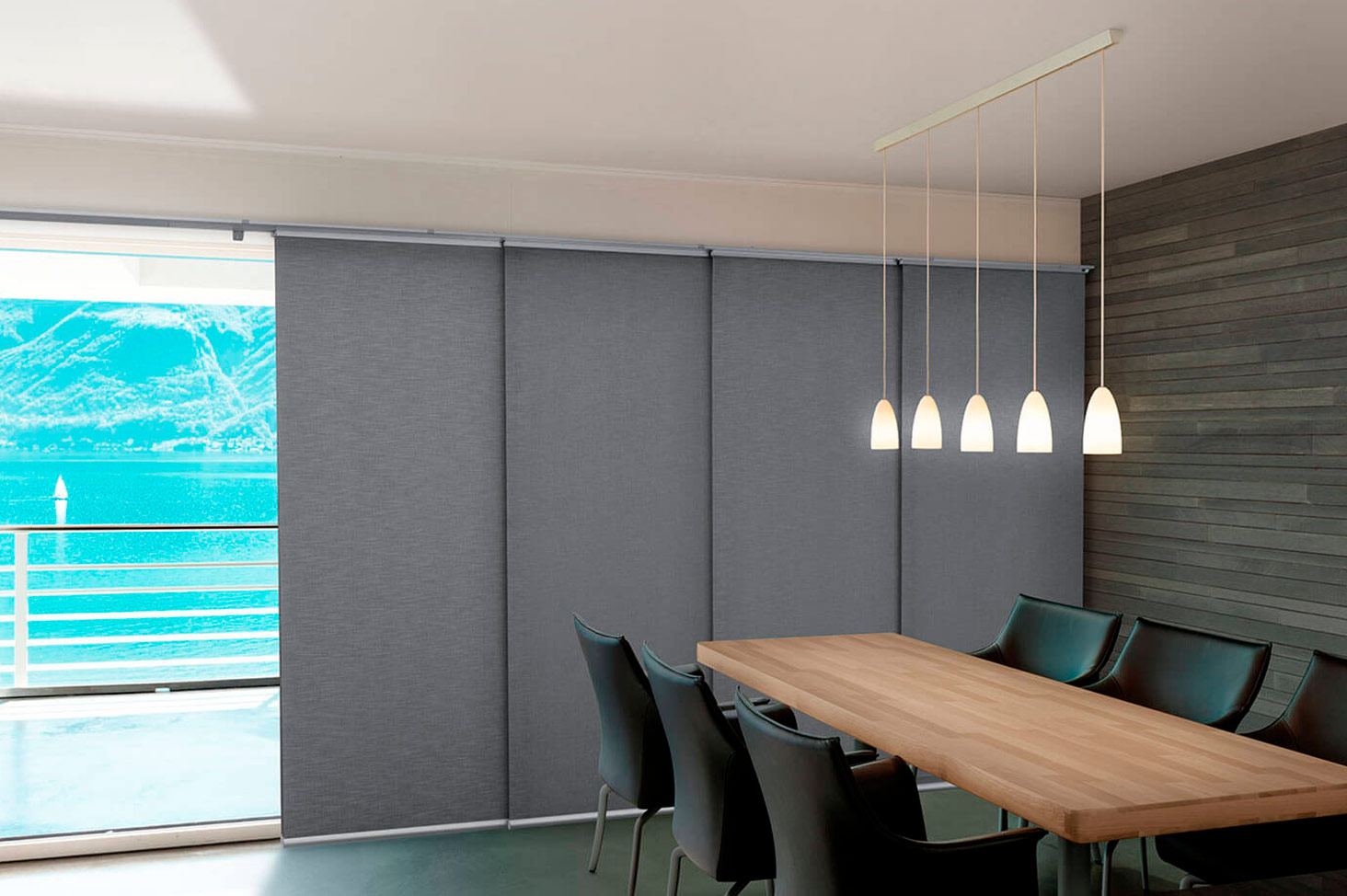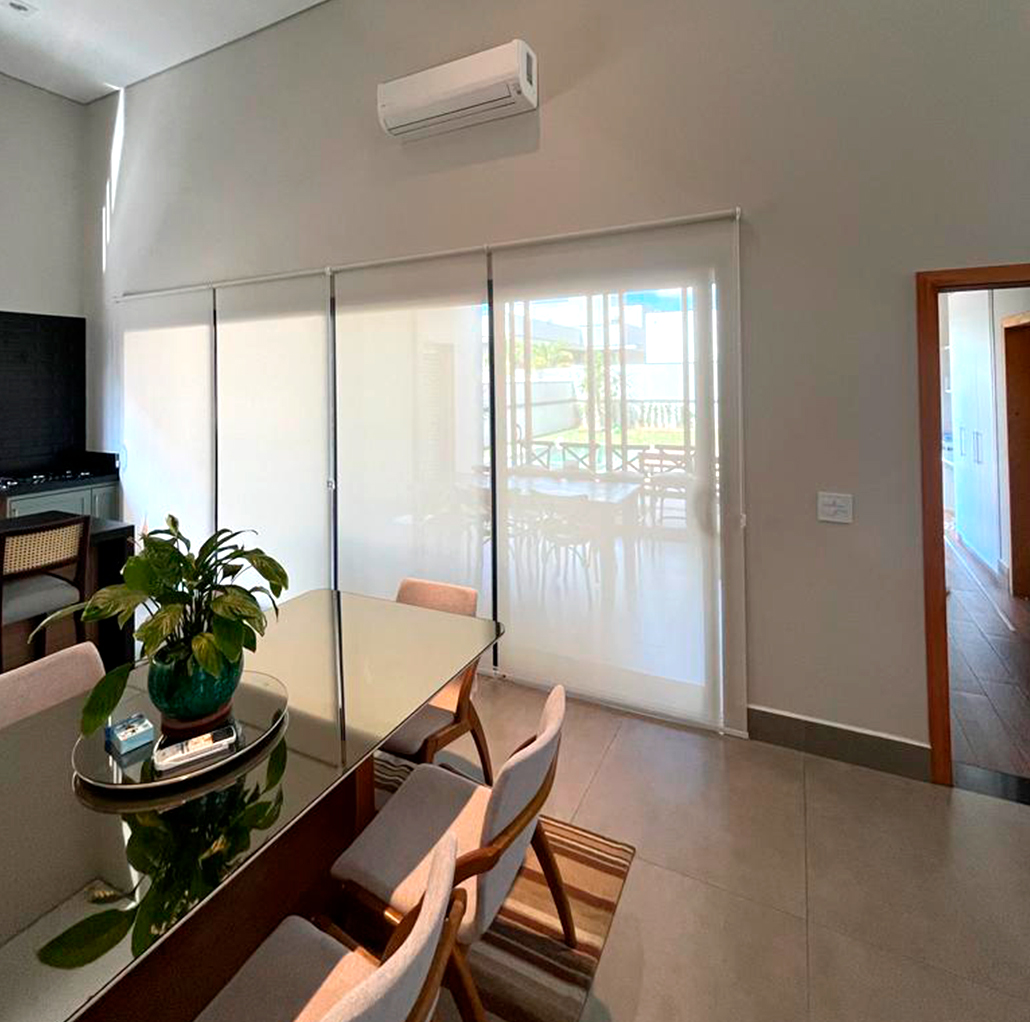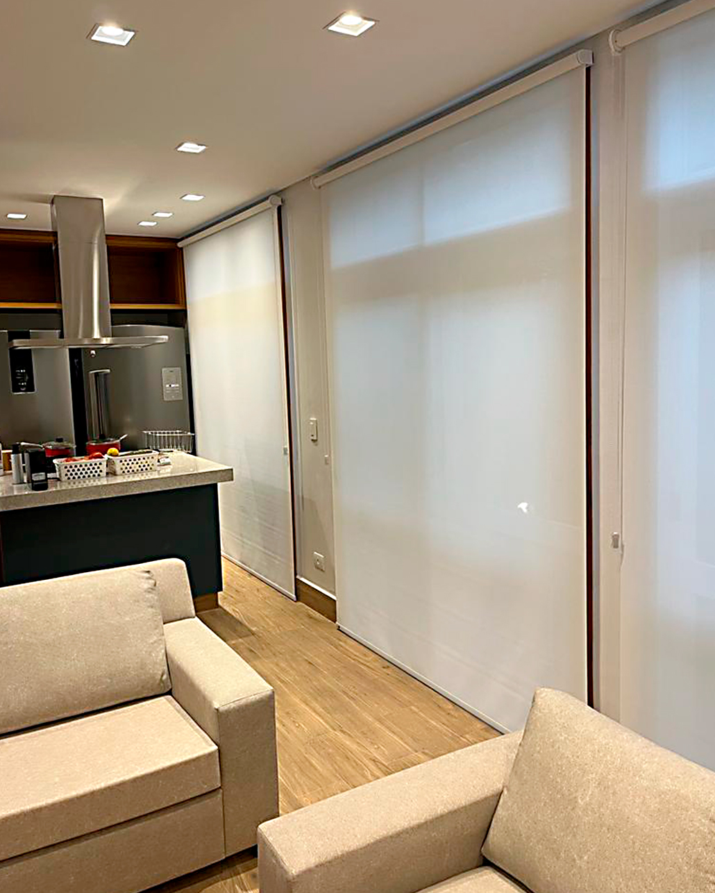 Composta por painéis de tecido deslizantes, essa cortina funciona como uma divisória de ambiente e é ideal para grandes janelas ou portas de vidro. Com a persiana painel, é possível controlar a quantidade de luz que entra no ambiente de forma fácil e prática, além de adicionar um toque de sofisticação e estilo na sua decoração.